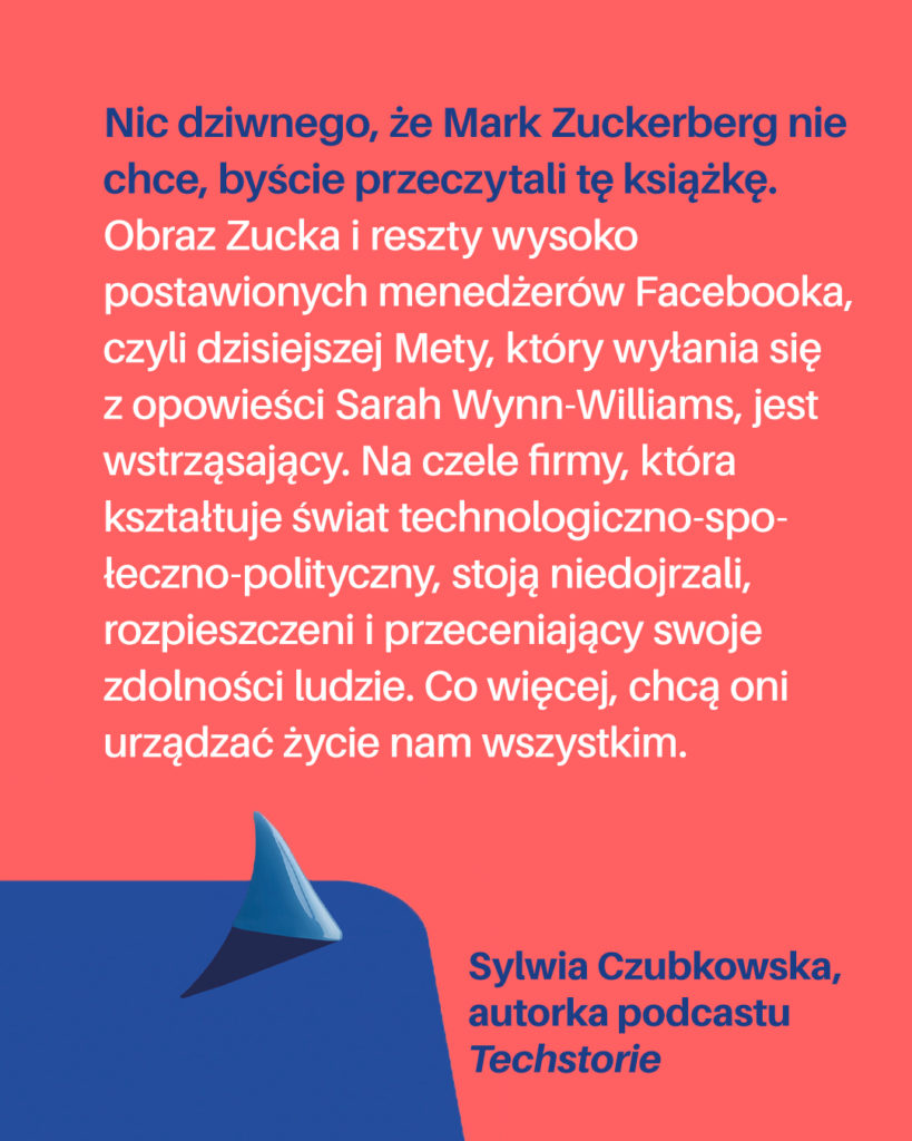 Sarah przez ponad rok walczyła o pracę w tej firmie. Chciała być częścią tej rewolucji i zmieniać świat na lepsze. Nie wiedziała jeszcze, co skrywa się za wzniosłymi ideałami jednego z największych gigantów technologicznych na świecie.